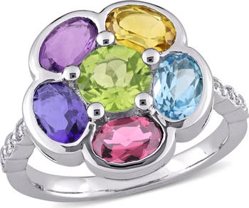 Multi-Gem & Diamond Floral Ring