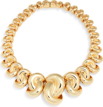 Add an architectural twist of texture to your ensemble with this gleaming necklace tied together with sculptural knots.