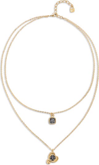 18k gold-plated pendant with double chain and hearts with black crystal.