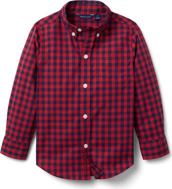 Janie and Jack Multi Mini Gingham Flannel Shirt, Main, color, Red