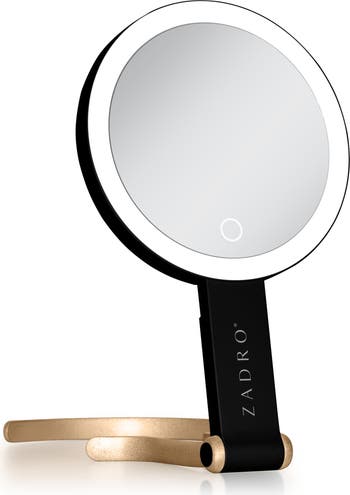 Meet your go-to everywhere mirror! This compact, dual-sided design pairs true-view 1x with detail-perfect 10x magnification and three dimmable LED color settings so your makeup reads true in any light. The clever multi-position stand lets you use it handheld, freestanding on a vanity, hung on a wall, or worn around the neck for completely hands-free touchups. Recharge it via the included USB-C cable and slip it into the included travel pouch. It’s your beauty companion for flights, office days, weekend getaways, and everyday glam.