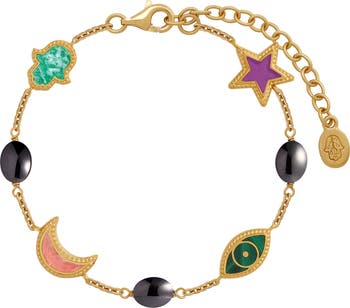 Multi Symbol Gold Plated Charm Bracelet Celestial Harmony