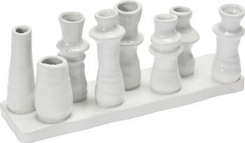 - This unique stoneware vase showcases 8 bud vases fixed on a sleek tray