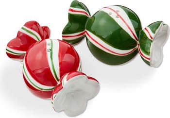- Add a festive touch to your holiday table with these charming multicolor ceramic candy salt and pepper shakers set designed to resemble colorful Christmas candies perfect for gift giving this season crafted from earthenware and measuring 3.25 inches long by 1.75 inches wide and 1.5 inches high ideal for enhancing your dining experience and spreading holiday cheer.