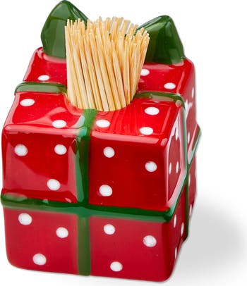 This festive present toothpick holder set is perfect for holiday gatherings. Made from earthenware, it's a fun and functional addition to any table.