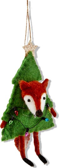 - Multicolor fox and tree ornament made of wool measures 6.5 inches high, 3.5 inches long, and 4 inches wide.
