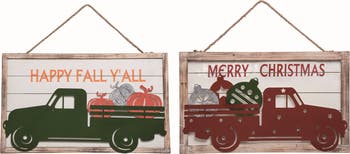 - Festively designed with multicolor metal, this 23.5" reversible Christmas truck wall decor adds a cheerful touch to your indoor holiday decorations. Easy to maintain with simple spot or wipe clean care, ensuring your festive decor stays vibrant and fresh throughout the holiday season. Celebrate the festive season with the Transpac 23.5" Multicolor Christmas Reversible Truck Wall Decor, a charming metal wall sign perfect for adding a touch of holiday cheer to your indoor space. Farmhouse themed piece in a splash of color.