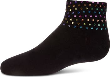 Our Multi Color Sequin Anklet is sure to bring some razzle dazzle into your kid's day! These anklet socks, with an ankle covered in multi colored sequins arranged in neat rows, are the perfect intersection of glam and casual. A cotton blend is a comfortable fabric that is ideal for all day wear. Shine on!