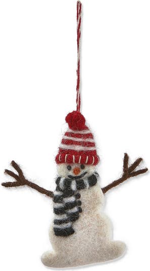 deck your tree with original tag ornaments! handcrafted in a fun snowman shape, this wool ornament is a fabulous accent to holiday trees, gift wrapping, mantel hooks, and more. the playful look brings a whimsical vibe without sacrificing style or elegance. each ornament features cord for easy hanging.