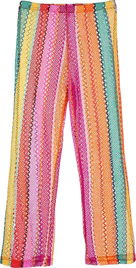 These striking beach pants feature an open-knit mesh fabric defined by bold vertical stripes. Designed for effortless layering over her favorite swimsuit, the silhouette is finished with a comfortable elasticated waistband.