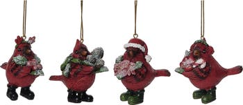 - Set of 4 multicolored Christmas dressy cardinal ornaments made of durable resin, each measuring 3" in height, perfect for adding a festive touch to your indoor tabletop decor. Easy to maintain: Simply spot or wipe clean to keep your festive ornaments looking vibrant and fresh. Brighten up your holiday decor with the Transpac Resin 3" Multicolored Christmas Dressy Cardinal Ornament Set of 4, perfect for gift giving and adding a festive touch to your indoor tabletop decorations. Birds themed set