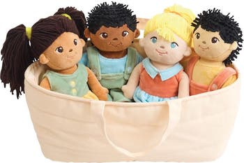 - Set comes complete with 4 ethnically diverse dolls and a convenient basket