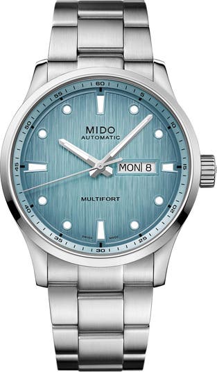 A sunray dial enriches this accurate Swiss-automatic watch styled with bar and dot markers and a large date window to achieve a retro look. It boasts an 80-hour power reserve and a skeletal caseback, while a classic bracelet gives it sophisticated appeal.