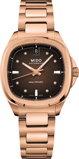 A sunray dial and square case modernize this accurate Swiss-automatic watch styled with diamond dot markers to achieve an elevated look. It boasts an 72-hour power reserve, while a mixed-finish bracelet makes it sturdy and classic.