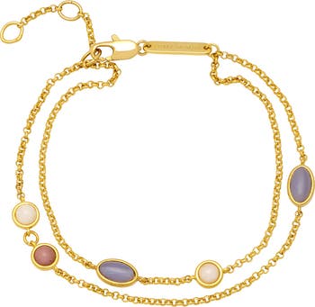 Create a dainty stacked look with this layered bracelet stationed by bezel-set moonstone, blue lace agate and rhodoscrite.