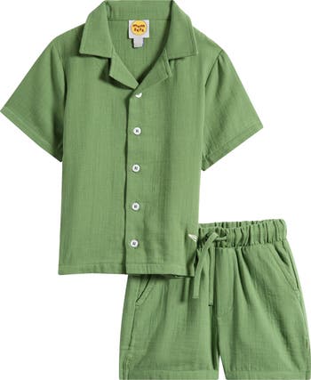 Softly rumpled cotton muslin invites breezy, sunny-day comfort in a camp shirt and matching shorts sized for kids who like to stay relaxed when the weather is warm. They work well as a set and mix/match easily with other casual favorites for expanding your child's wardrobe without blowing up your budget.