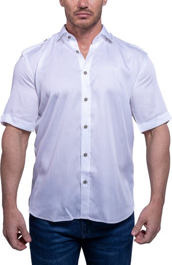Munich Resistance0177 White Short Sleeve Button-Up Shirt