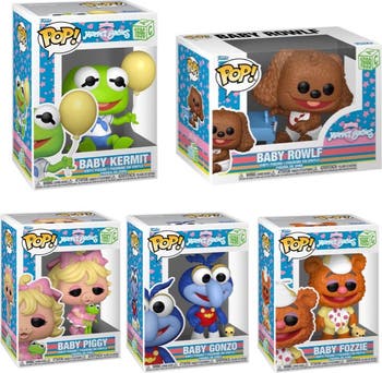 Muppet Babies Disney Funko Pop! Complete Set (5). Includes Baby Fozzie, Baby Gonzo, Baby Kermit, Baby Piggy, and Baby Rowlf. Each comes packaged in a Funko Pop window displayb box.