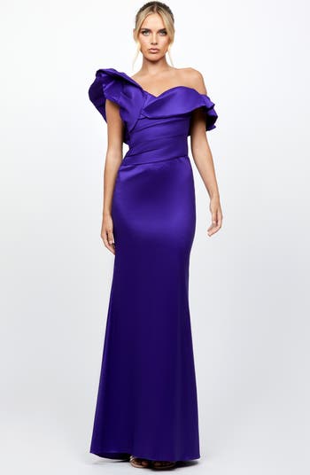 Make a bold statement in this stunning thick satin gown, featuring an asymmetric neckline with a sculpted one-on, one-off sleeve design for a modern, fashion-forward look. The draped bodice, enhanced with built-in bust cups and boning, offers a flattering and supportive fit. Flowing into a dramatic full-length fishtail skirt with a graceful back train, this dress combines elegance with striking silhouette details. Fully lined and finished with an invisible back zip closure, it’s perfect for formal events, galas, or any occasion where you want to captivate the room.