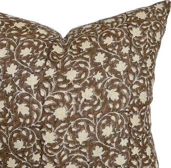 Murphy Deep Brown Floral Handblock Pillow Cover