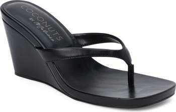 A lefty wedge heel adds extra height to this sophisticated version of a tried-and-true flip-flop.