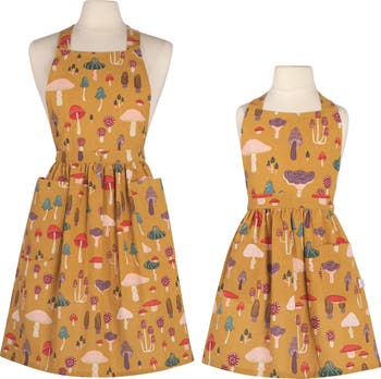 Emerging from the forest floor, these rare beauties are fine forms of fungus. Rich and varied patterns and tones embellish each woodland jewel wonderfully. Set comes with 2 aprons, an adult and toddler apron.