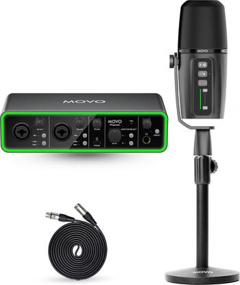 The Movo Music Production Bundle is designed for musicians, singers, and producers who demand high-quality audio in both professional and home studio environments. This all-in-one bundle includes the Phantom USB Audio Interface, UM6 XLR/USB-C Dynamic Microphone, and TMC3 Tabletop Stand, providing the perfect setup for recording clear and detailed audio. Whether you’re capturing vocals, instruments, or live performances, this bundle ensures your music sounds its best. Key Features: Studio-Quality Audio Interface for Musicians: The Movo Phantom USB Audio Interface delivers professional-grade sound with preamps featuring a 110dB dynamic range and 48V phantom power, ensuring every detail of your vocals, instruments, or live performances is captured with clarity and precision. Versatile Microphone for Music Recording: The UM6 XLR/USB-C Dynamic Microphone offers the flexibility of both XLR and USB-C connections, making it perfect for musicians who need high-quality sound in any recording environment. The built-in GainCast preamp provides up to 25dB of clean audio boost, ensuring rich, detailed recordings in both professional and home studio setups. Easy Sound Control for Musicians: The UM6 microphone features onboard controls for EQ, gain, muting, and monitoring, giving you full control over your sound. The XLR connection delivers studio-level quality, while the USB-C output offers plug-and-play convenience for quick, hassle-free setup. Durable and Customizable Design: Built for long-term use, the Phantom Interface features 22 adjustable light modes to match your studio’s aesthetic, while the UM6 microphone’s rugged construction ensures reliability through extended recording sessions. The TMC3 Tabletop Stand provides stable and compact microphone placement, making it ideal for desk-based recording setups. Complete Music Production Setup: This bundle includes the Phantom USB Audio Interface, UM6 Dynamic Microphone, and TMC3 Tabletop Stand, offering a comprehensive setup for musicians looking to record high-quality audio in any studio or home environment. Designed in Los Angeles: Movo is committed to supporting the music creation community with a full range of innovative gear designed to enhance the creative process for musicians and producers alike. Enhance your music production with the Movo Music Production Bundle, offering professional-grade sound and all the tools you need for top-tier recording in any studio setting.