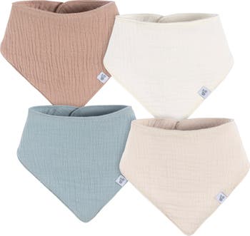 Say hello to easy, mess-free days with this 4-pack of bandana bibs! Thoughtfully designed with a 100% cotton prewashed muslin front and poly fleece backing, they’re soft, absorbent, and made to keep baby dry through drooling and teething. The secure closure offers a customizable fit, so they stay comfy as your little one grows. With versatile designs that complement any outfit, these bibs add a stylish touch to everyday essentials. Our essentials have been independently certified with STANDARD 100 by OEKO-TEX® so that you don’t have to worry about harmful substances in your little one’s wardrobe. Pack includes four bandana bibs.