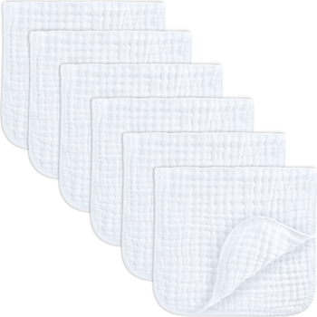 Super-soft, extra absorbent muslin burp cloths. An absolute essential for new parents, this 6-pack of muslin cloths will come in handy for feeding, changing, or cleaning baby. Made from 100% durable, breathable cotton, they are the perfect material to use against baby’s sensitive skin. Pack and size information: This pack contains 6x and 10x muslin burp cloths, measuring 20" x 10" inches each. The cloths are made up of 6 layers of extra absorbent, soft, 100% cotton. Ideal baby shower or new baby gift New moms simply can’t have enough burp cloths on hand – a unisex, practical gift that comes with a bow, ready for gift-wrapping. BUY NOW – our muslin burp cloths are an essential for all new parents!