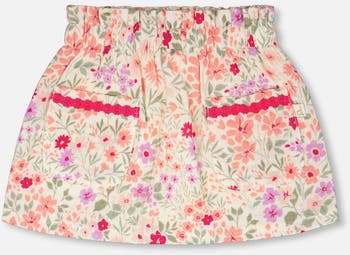 Our muslin skort off white with printed flowers is a playful twist on a summer essential. This charming bottom combines the look of a flared skirt with the practicality of hidden shorts underneath, complete with an elastic waistband and two front patch pockets. Crafted in airy cotton muslin with an allover floral print, it’s perfect for girls and baby girls, easy to pair with delicate tops from our "Little Meadow" collection.