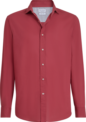 - Placket closure with mother of pearl buttonsSpread collarCuffs have one mother of pearl buttonEasy fit