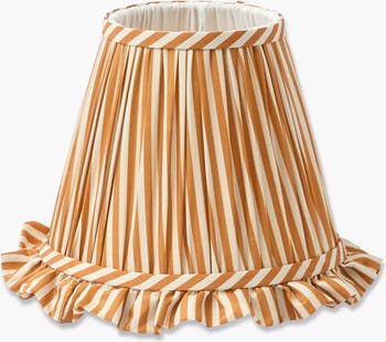 With its golden mustard stripes and playful ruffle trim, this lampshade brings a cosy autumn glow to your home, perfect for tables lit with charm and character.