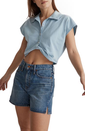 A knit shirt with a twist, it's super cropped with a raw hem and perfect to toss over your sports bra, unitard or even jeans postworkout. Made from supersoft sueded jersey crafted from regenerated cotton in an eco-friendly (AKA naturally sourced and uses about 40 percent less water than traditional dyeing) botanical dye.