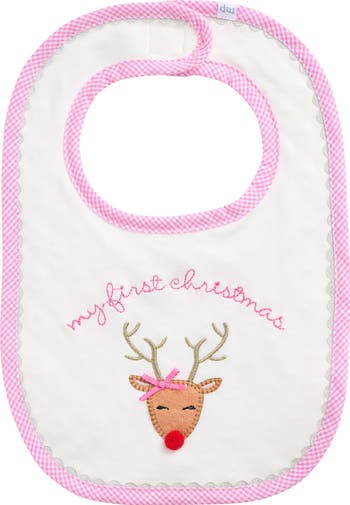 Made with an absorbent cotton front and ultrasoft faux-fur backing, this giftable embroidered bib makes baby's first Christmas extra special.