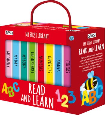 SASSI: MY FIRST LIBRARY - READ & LEARN - This wonderful set of 8 sturdy cardboard books, thoughtfully designed for toddlers and young children to explore essential early learning concepts such as My Family, My Body, My Day, Colors, Shapes, Opposites, Numbers, and The Alphabet. Each mini-book features vibrant illustrations and simple, engaging text to captivate young minds, while its compact, lightweight design and durable construction make it perfect for little hands to hold and explore independently. These books are ideal for both at-home play and on-the-go learning, ensuring they can withstand the wear and tear of daily use. Designed to spark curiosity and foster foundational skills, the set encourages playful, interactive learning, nurturing a love for discovery and supporting early childhood development in a fun and engaging way. A valuable resource for parents, caregivers, and educators, this collection offers endless opportunities to introduce key concepts, engage in storytelling, and build meaningful connections during shared reading time. Each book measures 3.15" x 4.72" (8 x 12 cm), and the set comes neatly packaged in a box measuring 8.66" x 3.15" x 6.9" (22 x 8 x 17.5 cm). Perfect for children ages 2 and up, this mini-library is a wonderful addition to any child’s early learning journey, combining fun, durability, and educational value in one compact package. INCLUDES: Storage box that holds 8 mini board books.