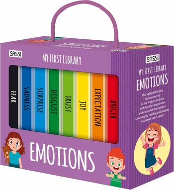SASSI: MY FIRST LIBRARY - EMOTIONS - This wonderful set of 8 sturdy board books is designed to help young children recognize and understand the most important emotions. Through vibrant, colorful illustrations and engaging rhyming stories, this delightful set introduces children to a range of feelings, encouraging them to identify and distinguish emotions in a fun and accessible way. Each book uses simple language and captivating imagery to make learning about emotions an enjoyable and meaningful experience for little ones. Perfectly sized for small hands, these durable books are ideal for early exploration and independent reading, while their compact format ensures they are easy to take along for on-the-go learning. This well-rounded library offers an interactive and playful approach to discovering the world of emotions, making it a valuable resource for parents and caregivers to foster emotional awareness and literacy in young readers. Measuring 3.15" x 4.72" (8 x 12 cm), with 8 pages per book and neatly packaged in a box measuring 8.66" x 3.15" x 6.9" (22 x 8 x 17.5 cm), this set is perfect for toddlers and young children ages 2 and up. Learning through reading, exploring, and play has never been so enjoyable, making this collection a cherished addition to any child’s early learning journey. INCLUDES: Storage box that holds 8 mini board books.