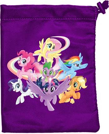 My Little Pony: Roleplaying Game Dice Bag. Keep your dice and other gaming accessories at hand in this premium quality My Little Pony Roleplaying Game dice bag! Perfect for use while playing the My Little Pony Roleplaying Game or in any other gaming session where you want to show of your fandom! Featuring high quality construction with soft fabric exterior and protective liner, along with a locking drawstring clasp, your dice will be safe and secure. My Little Pony Dice bag measures 6.25"x8.5" when flat. For use with the My Little Pony Roleplaying Game, where you can craft your own custom pony character to use in their storytelling game of friendship and magic!