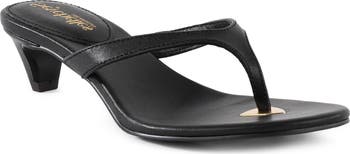 A walkable heel elevates a faux-leather sandal inspired by the timeless flip-flop silhouette.