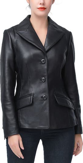 Tailored sophistication meets modern edge in the Women’s Mya Leather Blazer. Designed with clean lines and a structured silhouette, this sleek leather blazer offers a polished alternative to traditional outerwear. The classic notch lapel and streamlined button-front closure create a timeless profile, while subtle shaping through the waist enhances the feminine fit. Versatile and effortlessly refined, the Mya Leather Blazer transitions seamlessly from work to weekend styling - pairing just as easily with tailored trousers as it does with denim for a modern, elevated look.