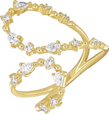 Part of our online trunk show, this style is available for a limited time from November 10 through December 23. Handcrafted from warm 18-karat gold, this crossover ring is artfully entwined with an exquisite constellation of sculptural beads and 15 sparkling diamonds.