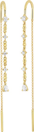 A total of 10 icy diamonds cascades the delicate 18-karat gold chains that drape from front to back of these handcrafted threader earrings.