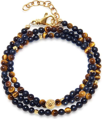 - this one-of-a-kind bracelet features a mix of 4mm matte onyx, brown tiger eye, turquoise, red glass, blue lapis, and matte hematite beads