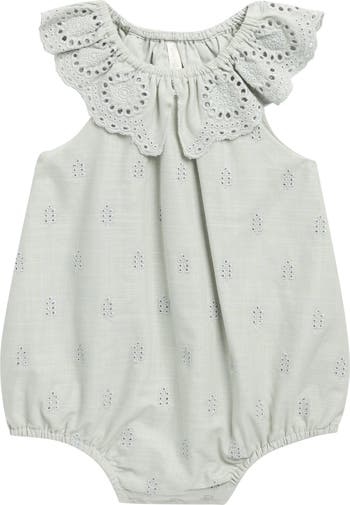 Perfect baby's warm-weather wardrobe with this airy cotton-eyelet bodysuit finished with a softly scalloped sailor collar.