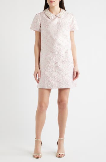 Mylan Pearly Collar Metallic Floral Shift Dress