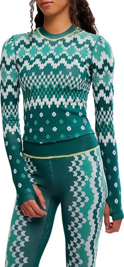 Love to layer in this sporty crewneck T-shirt covered in an eye-catching jacquard.