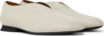 A notched topline and square toe amplify the contemporary silhouette of a smooth leather flat ready to join your weekday rotation.