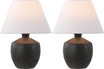 Our minimalist lamps add texture and interest with details inspired by Scandinavian design. Heavy resin bases in an abstract jar shape are topped with empire-shaped linen shades. The speckled finish adds subtle contrast to a bedroom, office or living room.