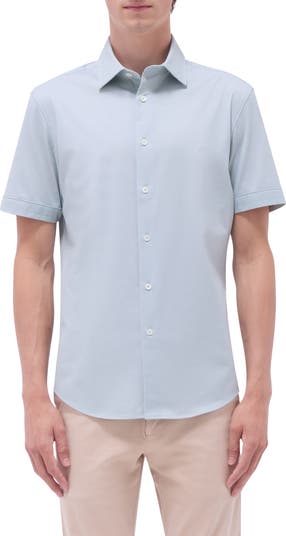 Myron OoohCotton® Short Sleeve Herringbone Button-Up Shirt