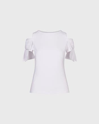 The myrttle is a trendy round neck t-shirt that combines style and comfort seamlessly. Its unique feature includes cold shoulder cutouts that add a chic and modern touch. The short sleeves of this shirt are adorned with an attached bow, infusing a feminine and playful element. The round neck design offers a classic and versatile look that can be dressed up or down for any occasion. Crafted with utmost attention to detail, the myrttle guarantees high-quality and durability. Embrace the fashion-forward trend with this stylish t-shirt that effortlessly elevates your everyday outfits. Add a touch of flair and sophistication to your wardrobe with the myrttle.