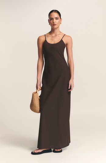 The MYRTLE SLIP DRESS by ST MRLO is a woven maxi-length dress that exudes effortless, coastal-inspired style. The scooped neckline and slim, adjustable straps create a flattering silhouette, while the bias cut drapes elegantly over your curves